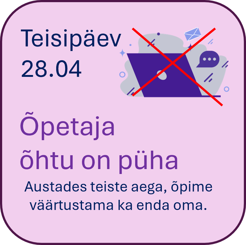 – kirjutamisvõistlus teemal “Kas nutivaba kool on vabadus või karistus?”. - Õpetajatele: Projekt “Kättesaadavuse piirid” – õhtud on puhkamiseks, mitte e-kirjadele vastamiseks.